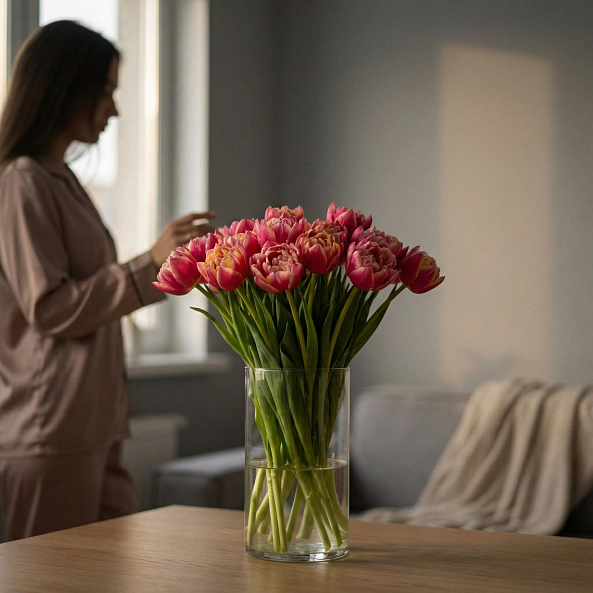 Охапка цветов — это про естественность и свободу. Без упаковки, без лент и готовых композиций. Просто много свежих цветов, собранных вместе. Вы сами создаёте из них настроение: подрезаете, распределяете по вазам, собираете свою композицию или оставляете лёгкий творческий беспорядок.
