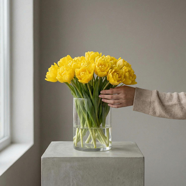 Охапка Ярко Желтых Пионовидных Тюльпанов "Никон" 20 шт.