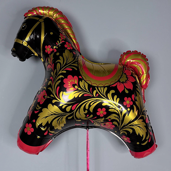 Фольгированный шар «Лошадка» — Красная с золотой росписью, 81 см