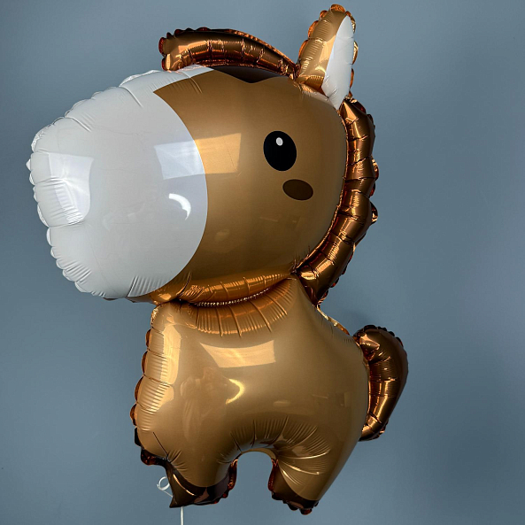 фольгированный шар «Маленькая лошадка» (85 см) в коричневом цвете с белой гривой и милым выражением лица. Идеально подойдет для детского праздника, дня рождения или тематической вечеринки — станет ярким и запоминающимся украшением.
