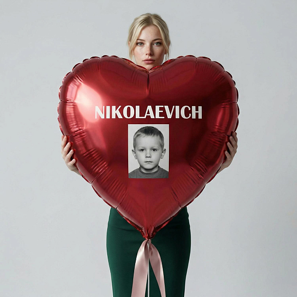 Этот красный фольговый шар в форме сердца — не просто декор, а живое напоминание о ваших чувствах. Персонализированный с именем «NIKOLAEVICH» и фотографией близкого человека, он превращает обычный сюрприз в запоминающуюся историю. Мужу, Парню, Мужчине.