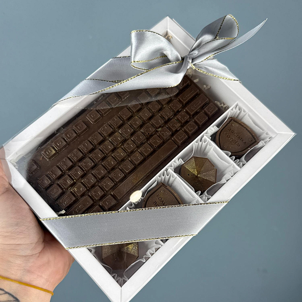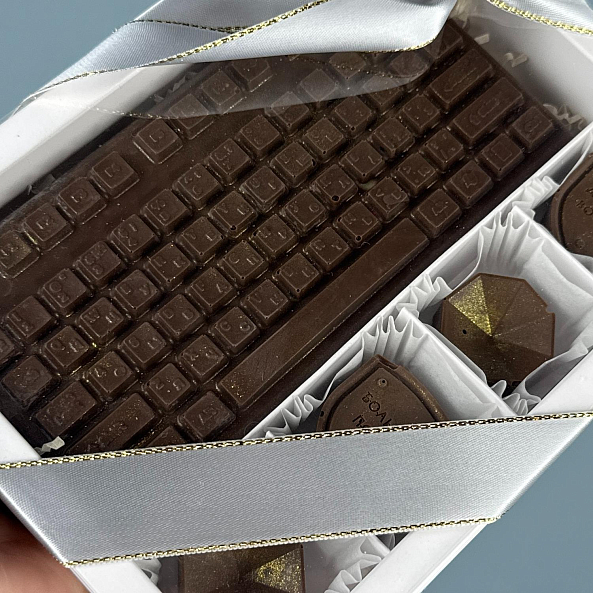Шоколадную клавиатуру с детализированными клавишами и надписями — настоящий шедевр ручной работы, который заставит улыбнуться даже самого строгого программиста.