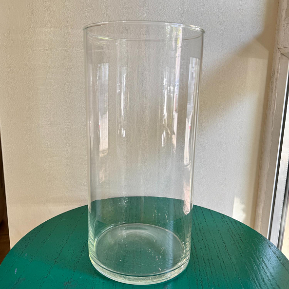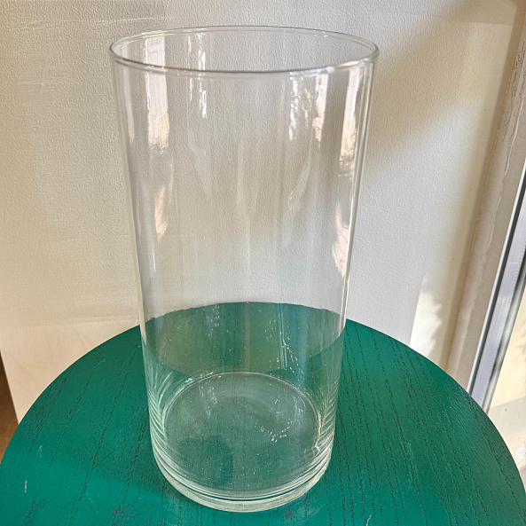 Изделие выполнено из прозрачного стекла с гладкой поверхностью и строгой цилиндрической формой, что придаёт ему минималистичный и универсальный вид. Высота вазы позволяет использовать её для длинных стеблей, создавая эффект воздушности и гармонии.