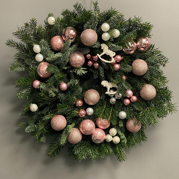 Новогодний венок «Розовое чудо»