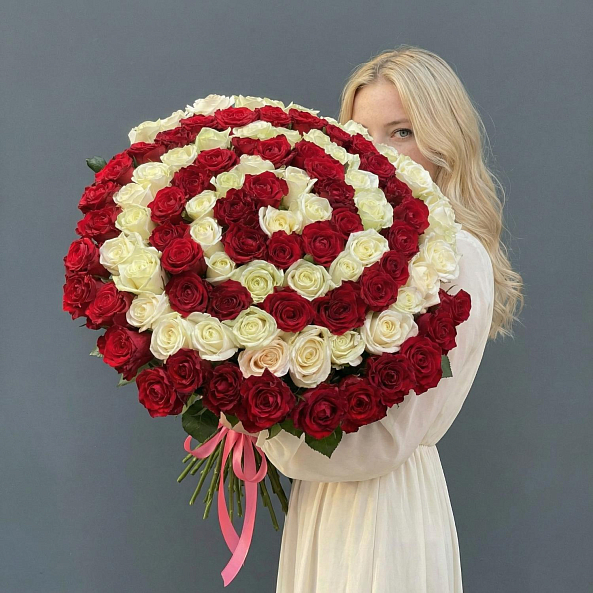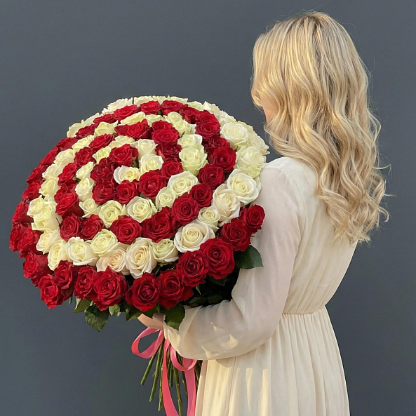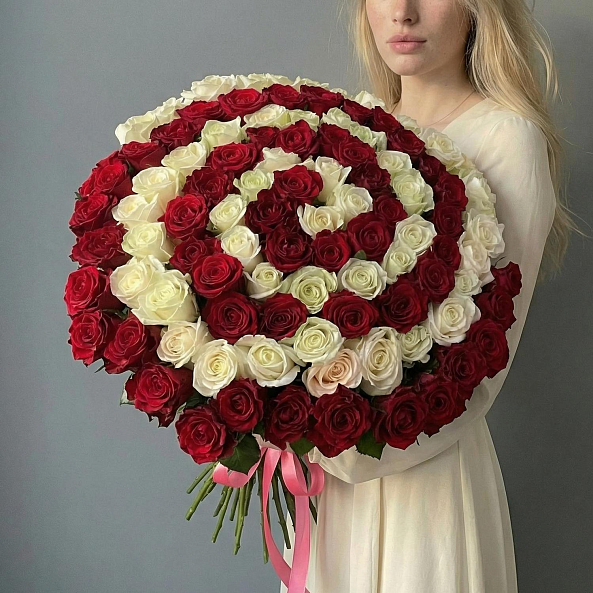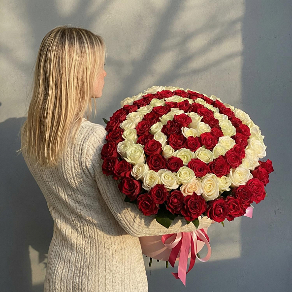 Букет «101 Роза Спираль» — Красно-Белая, 70 см