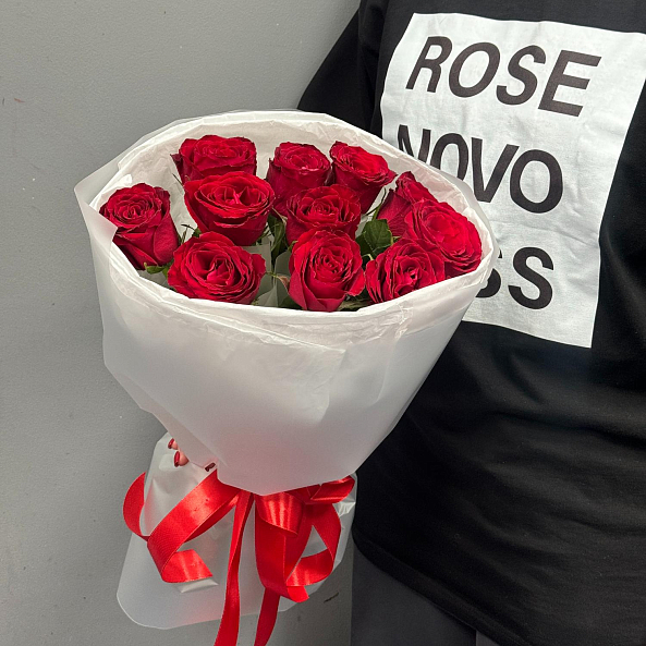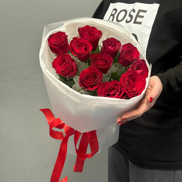 11 красных роз "Мадам ред" 40 см