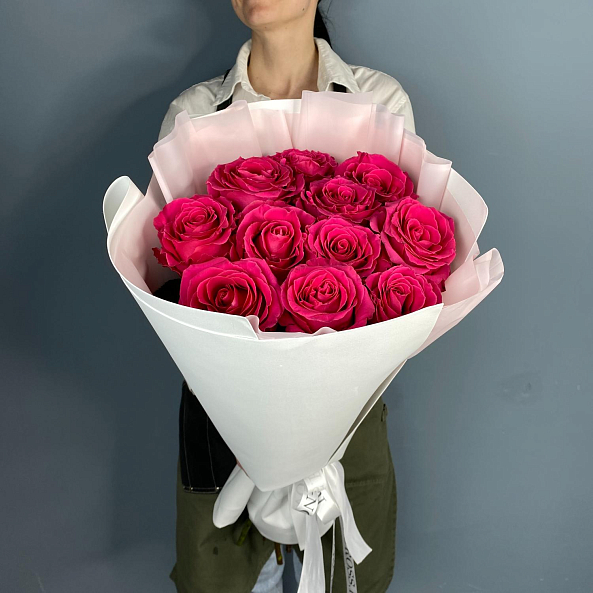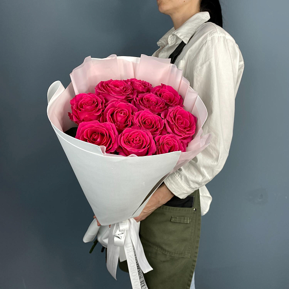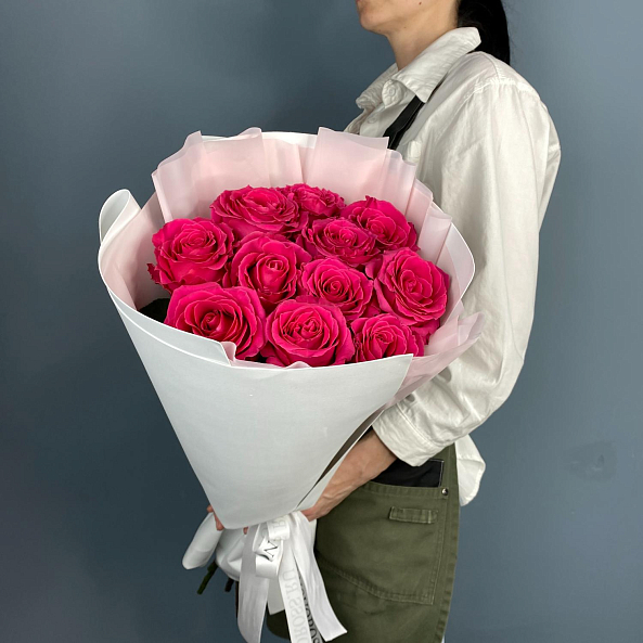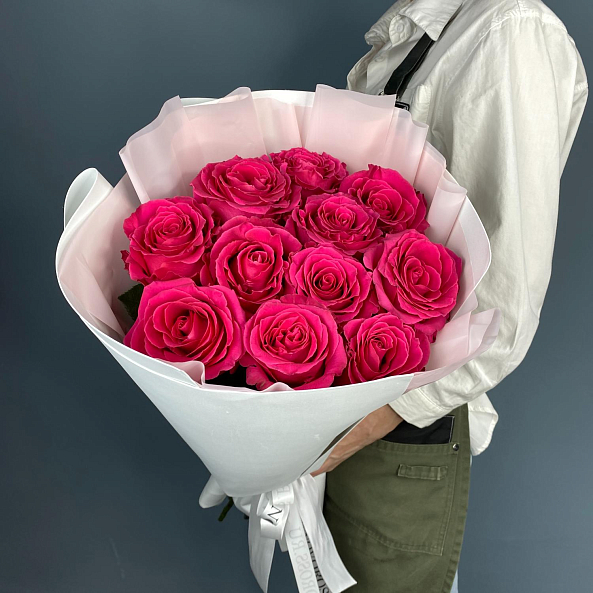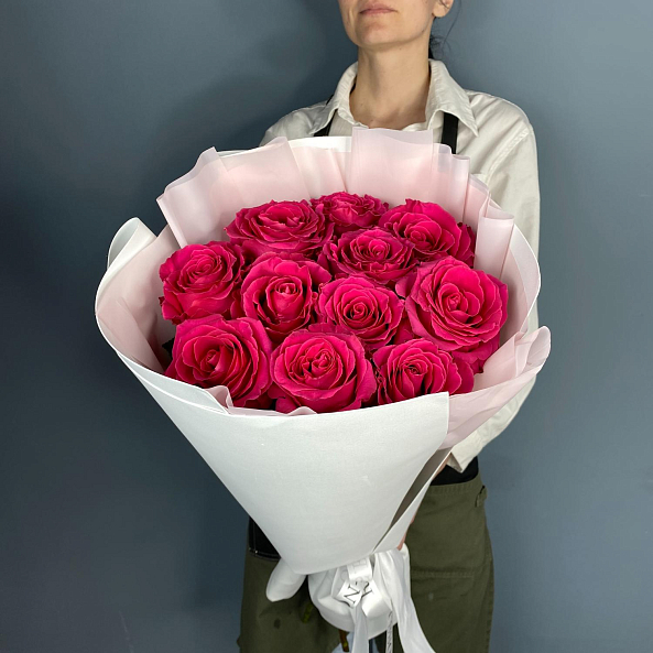 Букет из 11 роз ярко-малинового оттенка сорта Фулл Монти – это истинное воплощение красоты и нежности. Каждая роза в этом букете отличается насыщенным цветом и роскошными лепестками, которые создают впечатляющий визуальный эффект. Идеален для романтических моментов, поздравлений или как подарок без повода. Подчеркните свои чувства с этим великолепным букетом!