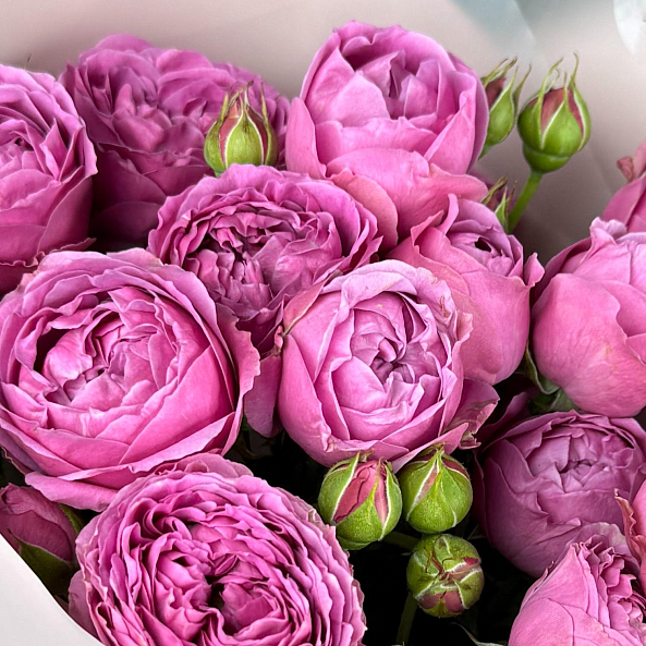 Нежный, утончённый букет из трёх пышных роз насыщенного фиолетово-розового оттенка. Идеален для первого признания, дружеского подарка или просто чтобы сказать: «Ты — особенная». Лёгкий, романтичный, с ноткой загадочности — как вечерний закат.