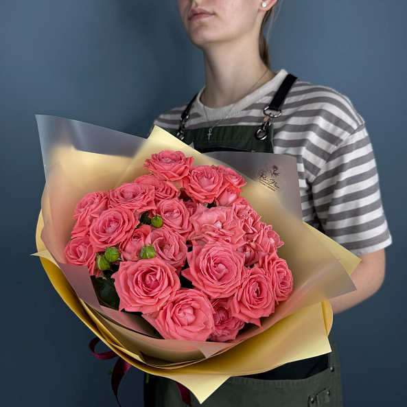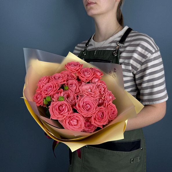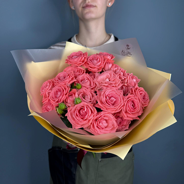 7 кустовых роз "Барбадос" 40 см в коралловых тонах — это нежная, изысканная и трогательная композиция, наполненная теплом и романтикой. Идеальный букет для поздравлений, выражения любви или как милый подарок, который подчеркнёт ваше внимание и заботу.