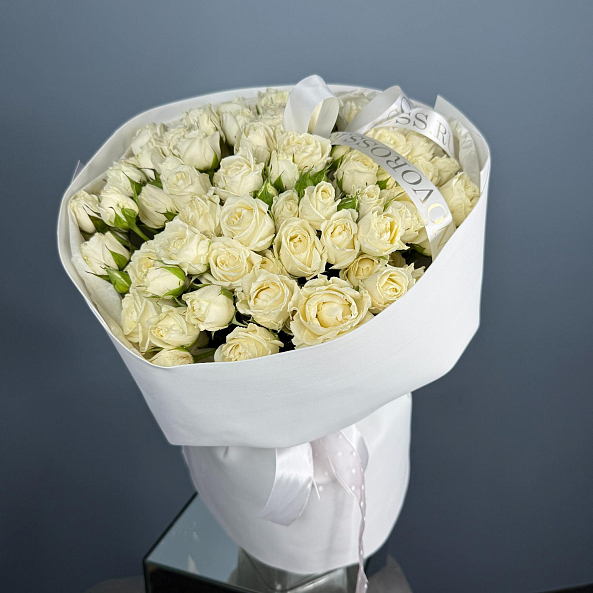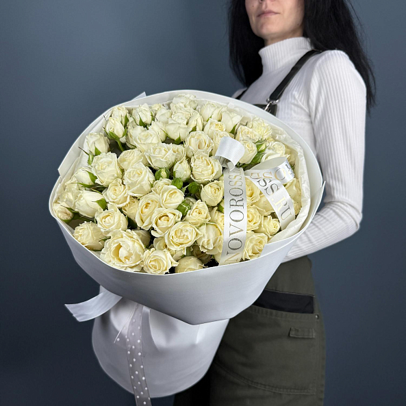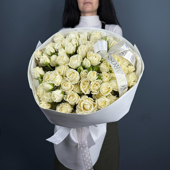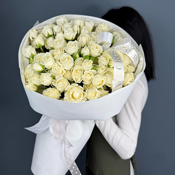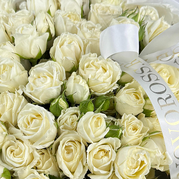 Букет из 21 кустовой розы белой "Беларусь" — это элегантное и нежное цветочное оформление. Розы высотой 40 см имеют насыщенный белый цвет и обладают приятным тонким ароматом. Кустовые розы отличаются пышностью и способностью долго сохранять свой свежий вид. Такой букет станет идеальным подарком для различных случаев: свадеб, юбилеев или просто как знак внимания. Композиция создает атмосферу нежности и утонченности.