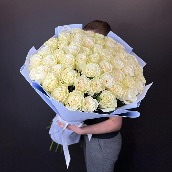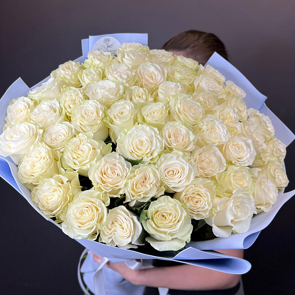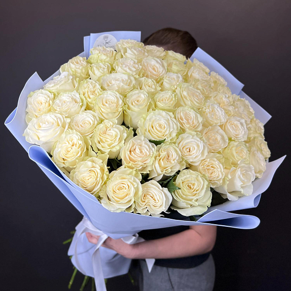 Роскошный букет из множества нежно-белых роз — символ чистоты, изысканности и глубокого уважения. Идеальный выбор для самого важного повода, чтобы поразить своей красотой и великолепием.
