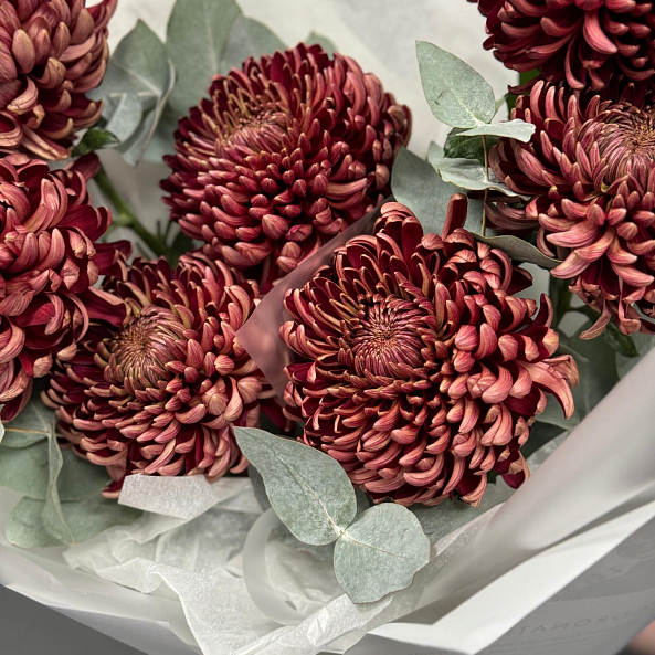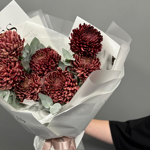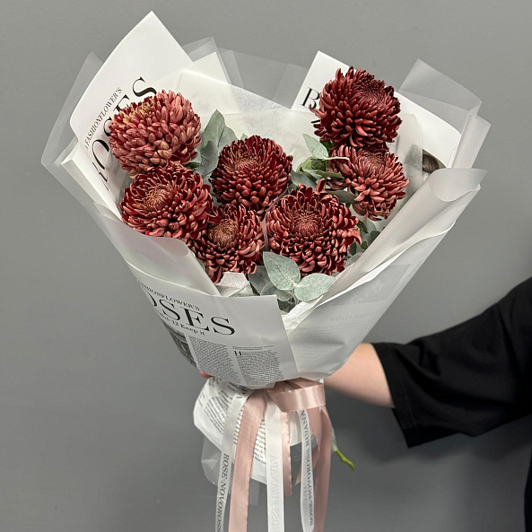 Букет из 7 коричневых хризантем "Бигуди"