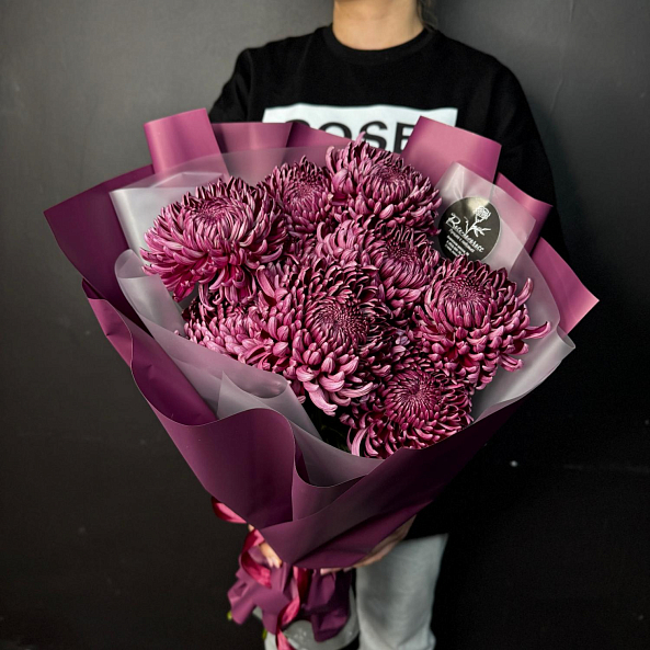 Букет из 9 фиолетовых хризантем "Бигуди"