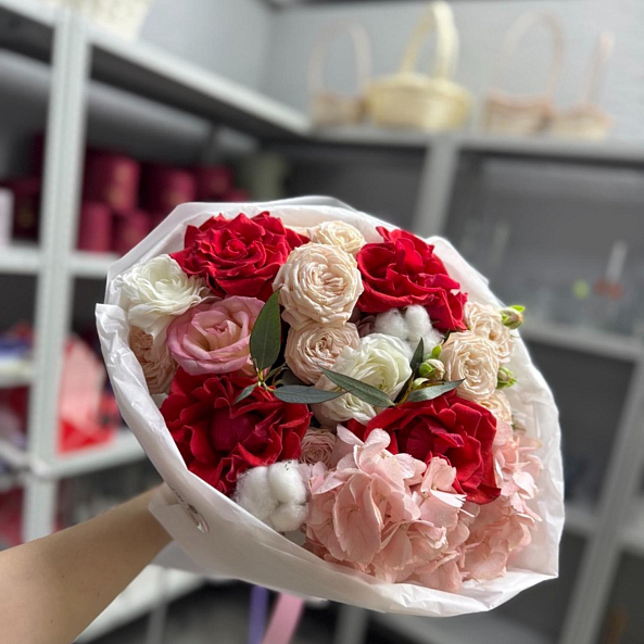 Цветочная Комната. Французская Роза, Кустовая Пионовидная Роза, Ранункулюс, Кустовая Роза, Эвкалипт.