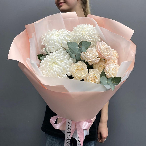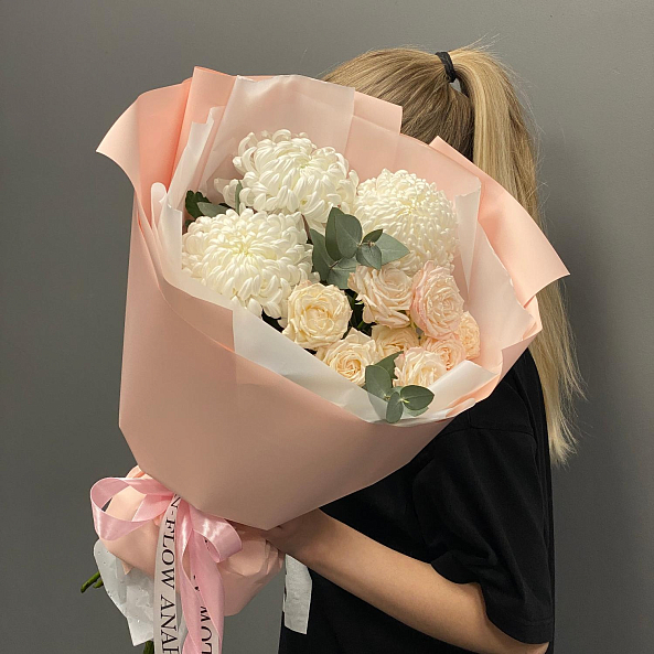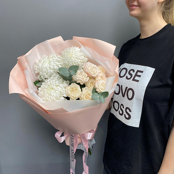 Букет «Нежный уют» — Хризантемы + Розы Пионовидные