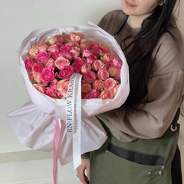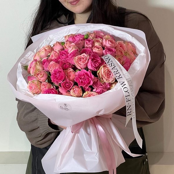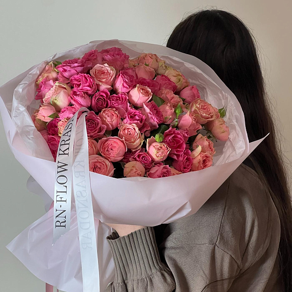 Букет Цветов. Кустовые Пионовидные Розы "Пинк Дедикейшн", "Спешл Дайменшн" 21 шт.