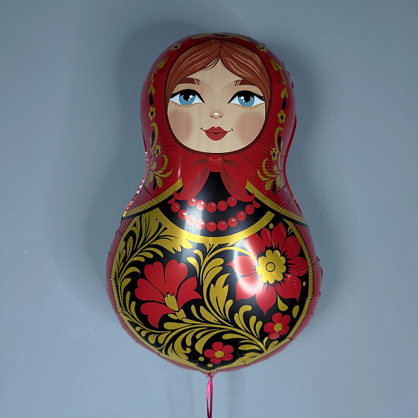 Шар фольгированный, Матрешка красная золотая роспись, 80 см — 1 штука
