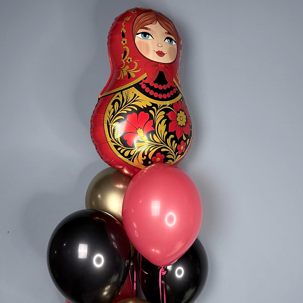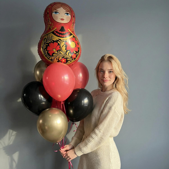 Фонтан шаров «Золотая Матрёшка» — Красный/Черный/Золотой