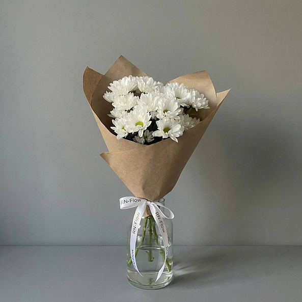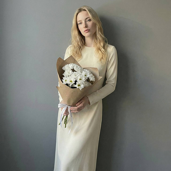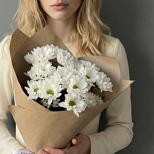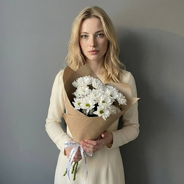 Погрузитесь в атмосферу утонченной простоты с этим очаровательным букетом из 3 белых кустовых хризантем «Чик». Каждый цветок, словно маленькое солнце, сияет чистотой белоснежных лепестков и теплыми желтыми сердцевинами, создавая ощущение легкости и свежести. Кустовая форма придает букету объем и пышность, превращая его в живой символ искренности и гармонии.