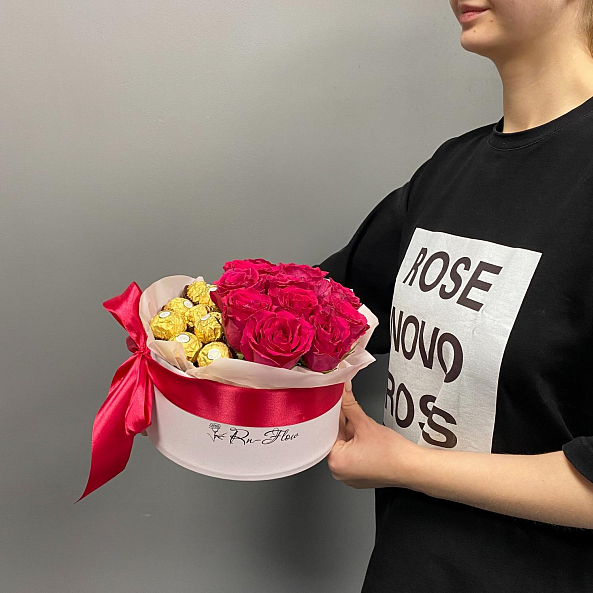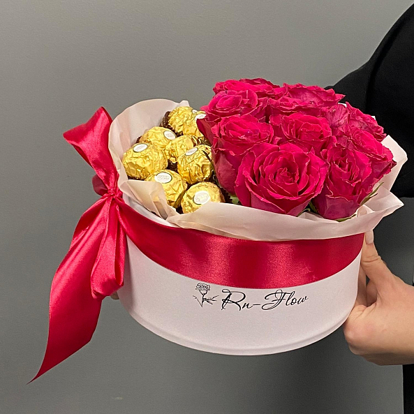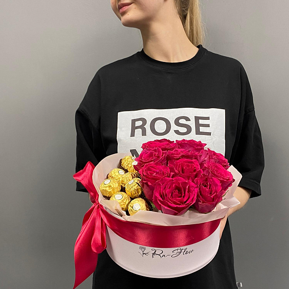 Коробка «Розовый восторг» — Розы + Ferrero Rocher