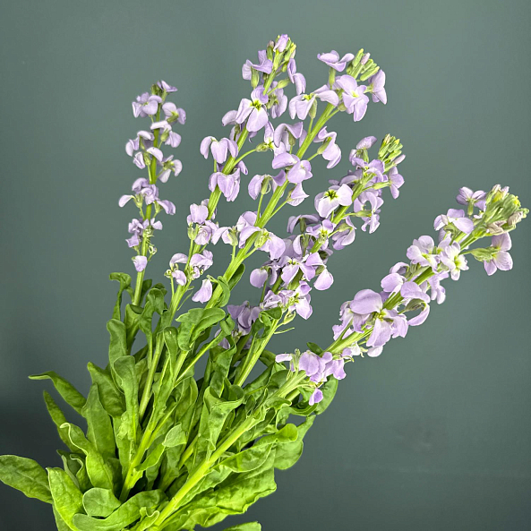 Этот изысканный букет — настоящая симфония умиротворения и гармонии, где маттиола «Пустошка Лаванда» в нежно-лавандовом оттенке создает компактную, ароматную композицию, словно застывший момент из самого спокойного уголка сада.