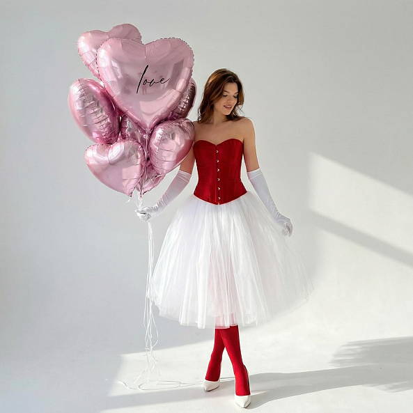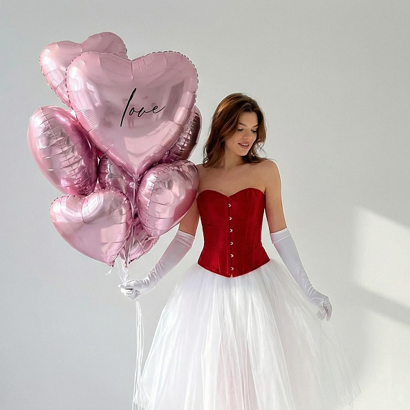 Погрузитесь в атмосферу нежной страсти с этим очаровательным набором из розовых фольгированных сердец! Каждое сердце, покрытое мягким металлическим блеском, словно окутано утренним светом, а центральный шар с изысканной надписью «love» вручает вашим чувствам самое трогательное послание. Их пастельный оттенок и глянцевая текстура создают ощущение, будто вы держите в руках кусочек неба, где любовь — главный закон.