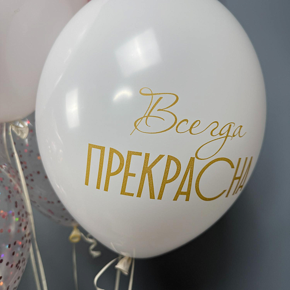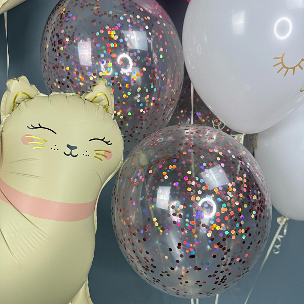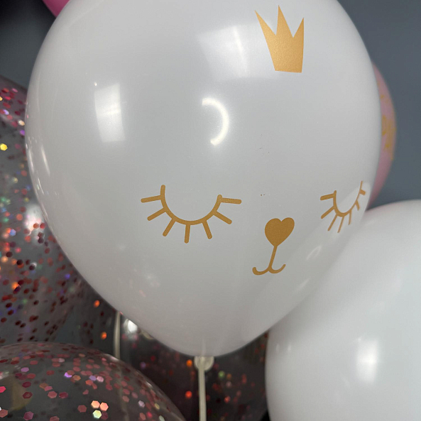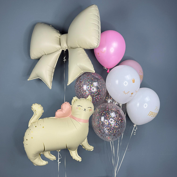 Набор шаров для девочки — нежный и очаровательный подарок! В комплекте: фольгированный котик с розовым бантом, большой бант в пастельных тонах, прозрачные шары с конфетти и воздушные шары с принтами «Будь прекрасной» и коронами. Надуты гелием — легко парят, создавая праздничное настроение. Идеально подойдёт для дня рождения, выписки или просто как трогательный сюрприз.