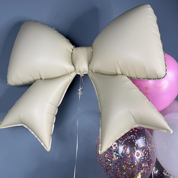 Шар фольгированный, Бант, Кремовый, сатин 99 см — 1 штука