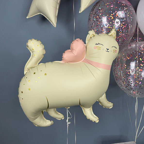Шар фольгированный, Кошечка кремовая с бантом.Сатин 63 см — 1 штука