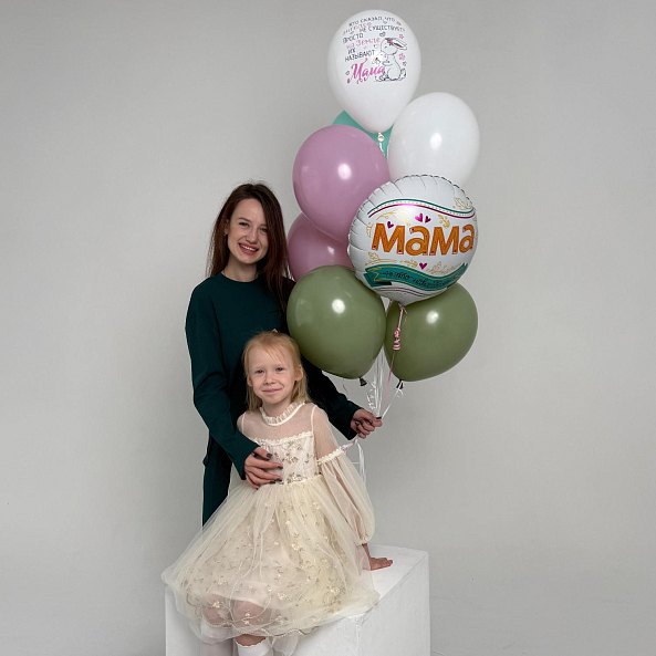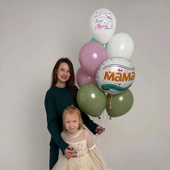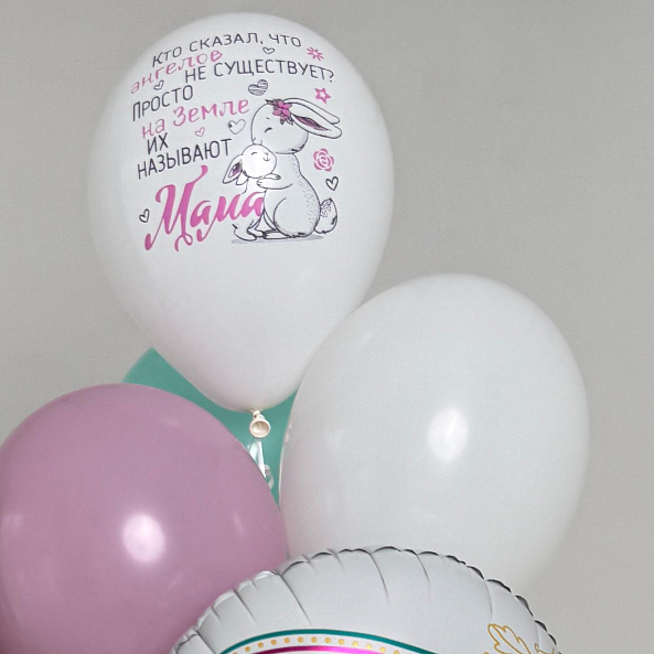 Сказочный набор шаров для самой любимой мамы! В комплекте — большой шар с яркой надписью «Мама» и забавный шарик с рисунком кролика и стихотворным поздравлением. Дополнен нежными латексными шарами в пастельных тонах. Идеальный подарок от всей семьи, полный тепла, любви и юмора.