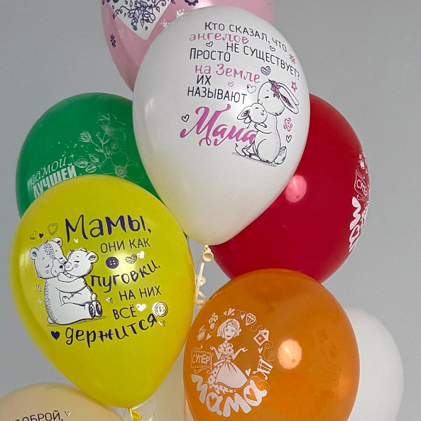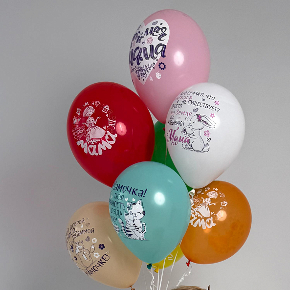 Веселый и яркий набор шаров с забавными принтами и нежными поздравлениями для мамы. Идеальный выбор для маленьких детей, которые хотят порадовать свою мамочку — легкий, радостный и полный любви подарок на любой праздник. Жене, теще, свекрови