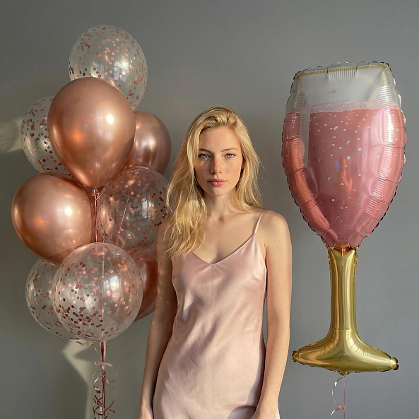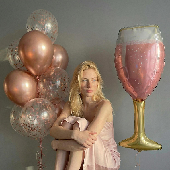Фольговые шары «Розовый бокал весны» — сияние праздника в каждом детальке