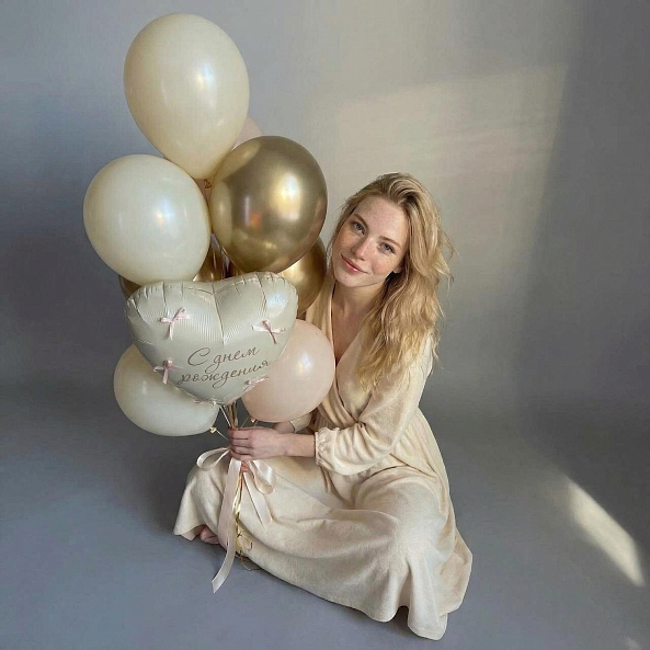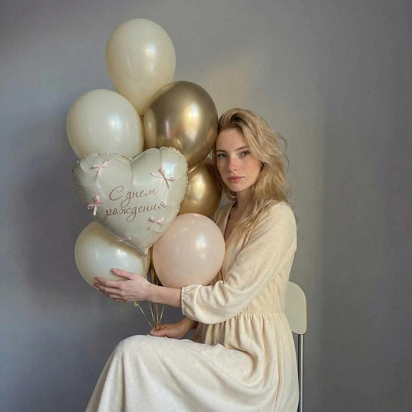 Этот уникальный набор из 9 шаров — настоящий гимн празднику, где каждая деталь создает атмосферу тепла и элегантности. Центральным элементом станет сердце с надписью «С днём рождения», украшенное нежными розовыми бантиками, словно застывший волшебный момент.