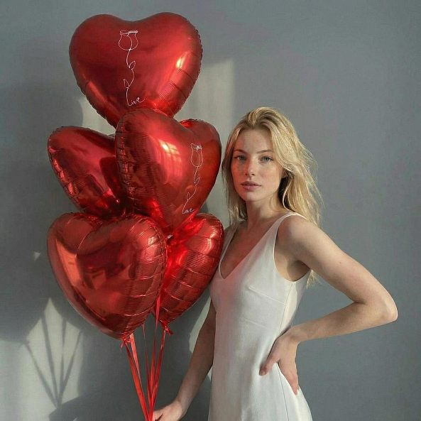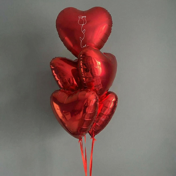 Набор воздушных шаров в форме сердца с изысканным рисунком розы и нежной надписью «love» — это не просто декор, а живое признание в чувствах. Каждое яркое красное сердце, украшенное тонким силуэтом цветка, создает атмосферу глубокой романтики, словно ваше сердце бьется в унисон с каждым вздохом.