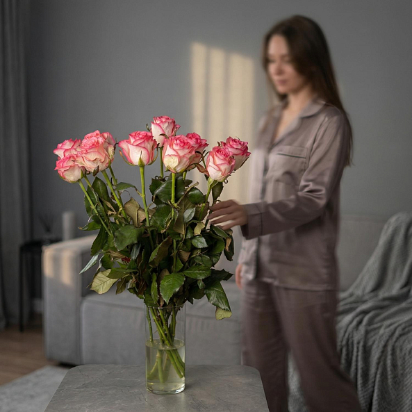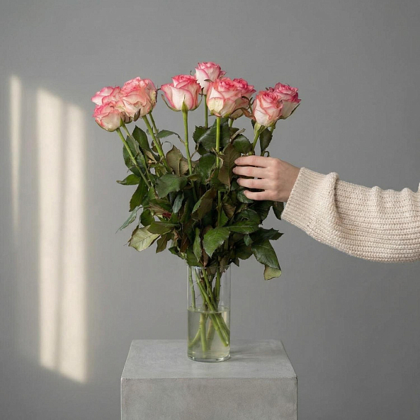Охапка Бело-Розовой Розы "Джумилия" 70 см - 10шт.