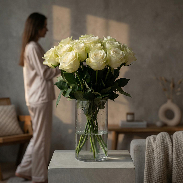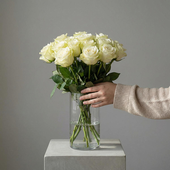 Роза "Атена" (Кения) (40 см, Белая) — 20 штук