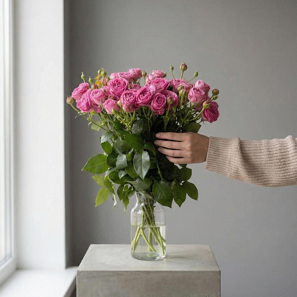 Охапка цветов — это про естественность и свободу. Без упаковки, без лент и готовых композиций. Просто много свежих цветов, собранных вместе. Вы сами создаёте из них настроение: подрезаете, распределяете по вазам, собираете свою композицию или оставляете лёгкий творческий беспорядок.