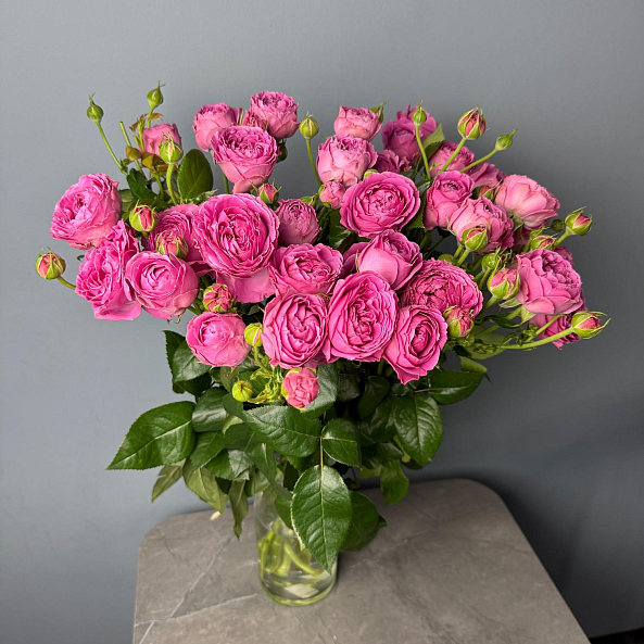 Охапка Кустовых Пионовидных Роз "Мисти Баблс" 60 см - 10шт.