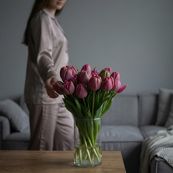 Охапка Темно-Розовых Пионовидных Тюльпанов "Дабл Ю" 20 шт.