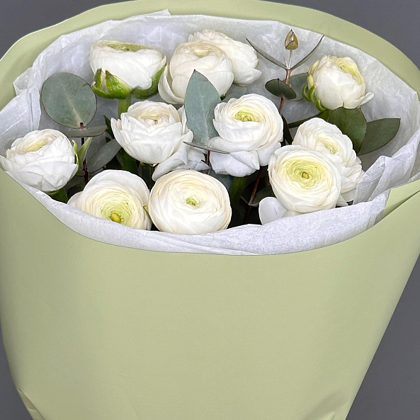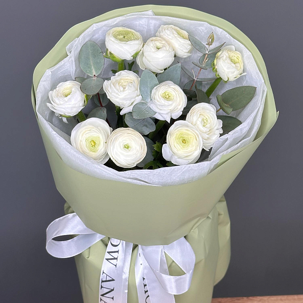 Букет «Белоснежная Гармония: 11 Белых Мини-Ранункулюсов»