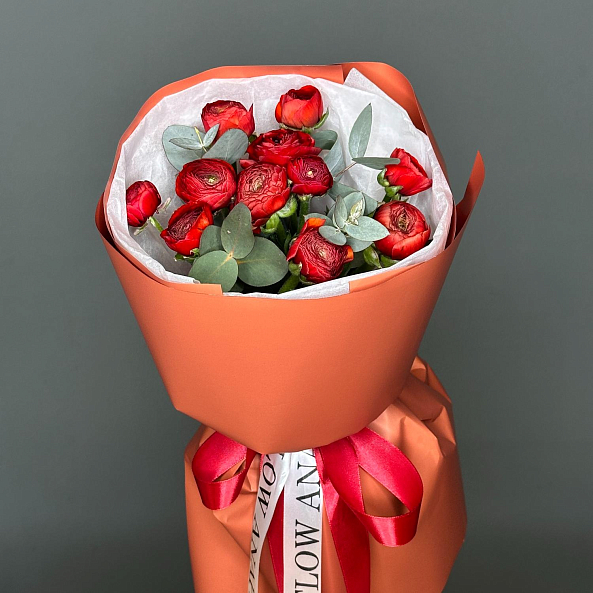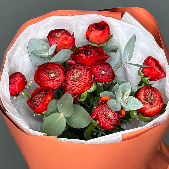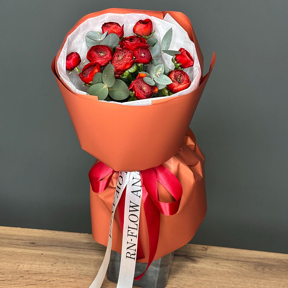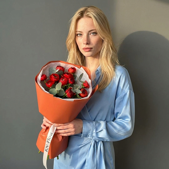 Букет «Огненный Вихрь: 11 Красных Мини-Ранункулюсов»