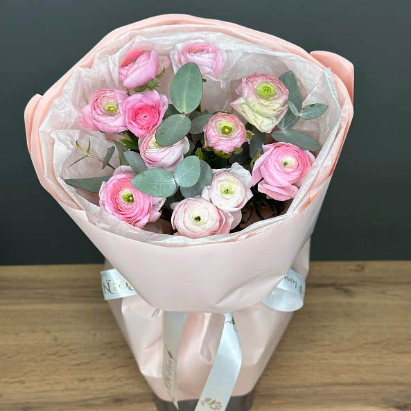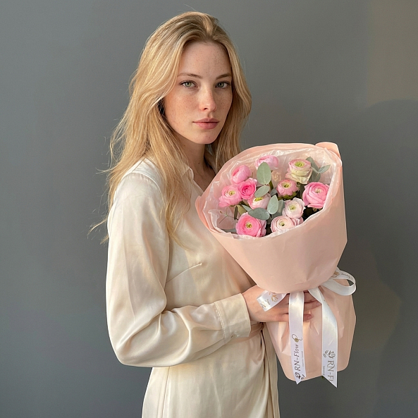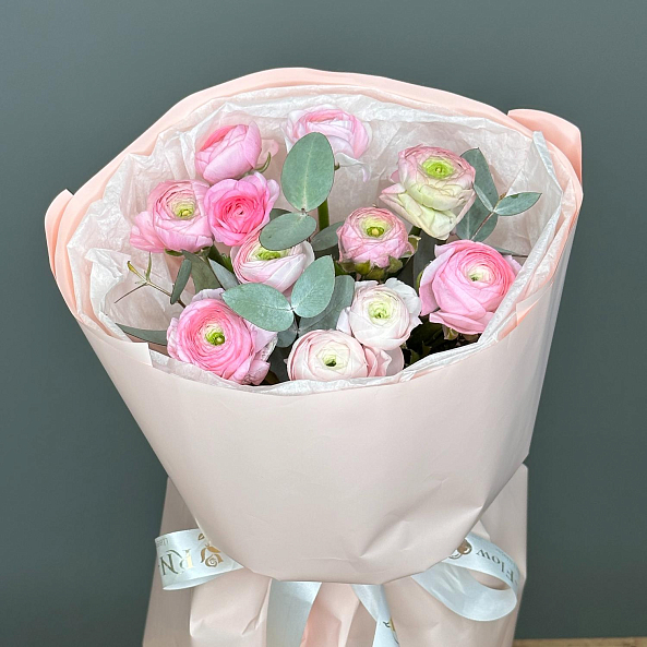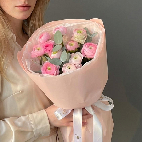 Букет «Весенний Розовый Вихрь: 11 Мини-Ранункулюсов»