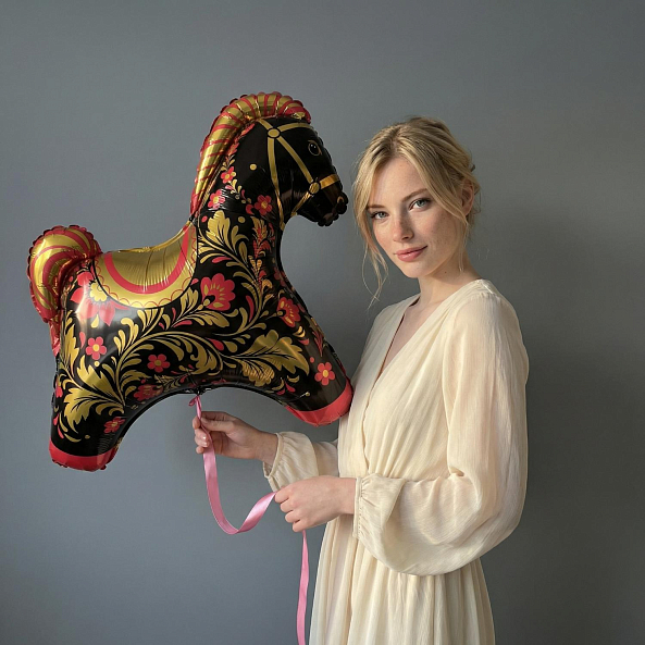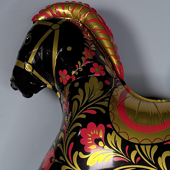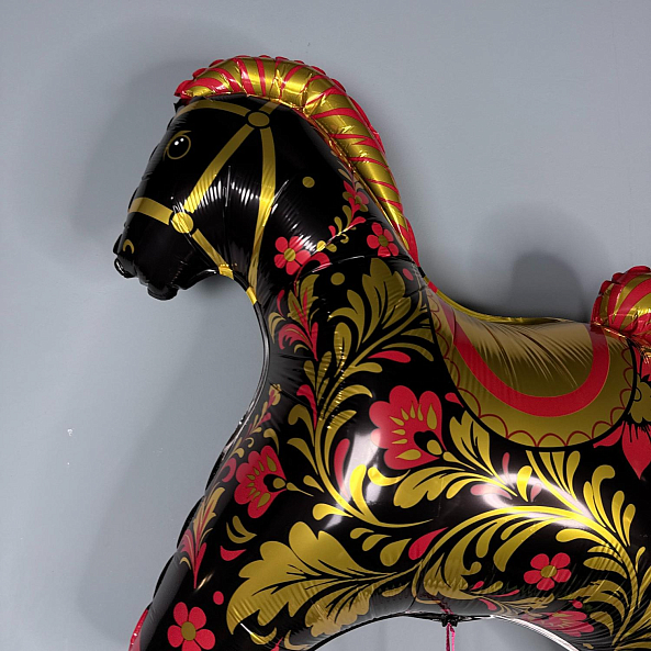 Фольгированный шар «Лошадка» — Красная с золотой росписью, 81 см