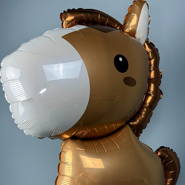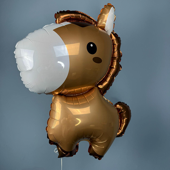 фольгированный шар «Маленькая лошадка» (85 см) в коричневом цвете с белой гривой и милым выражением лица. Идеально подойдет для детского праздника, дня рождения или тематической вечеринки — станет ярким и запоминающимся украшением.