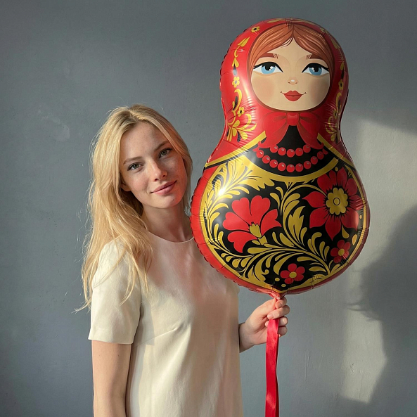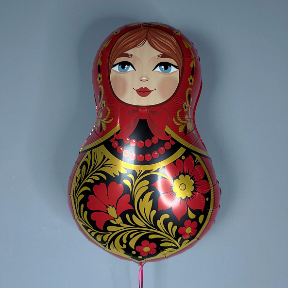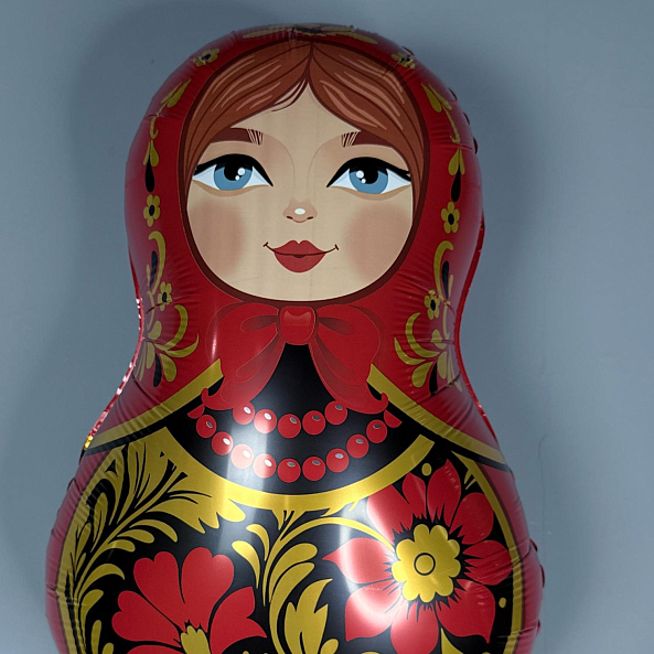 Фольгированный шар «Матрёшка» — Красная с золотой росписью, 80 см