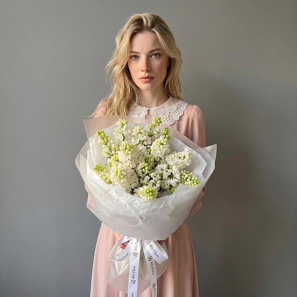 Этот очаровательный букет — настоящая симфония весеннего пробуждения, где 7 веток белой сирени из России в нежных оттенках создают компактную, ароматную композицию, словно застывший момент из самого романтического сада. Каждое соцветие, с его изящными лепестками и легким ароматом, дарит ощущение тепла и чистоты, а свежие зеленые стебли подчеркивают естественную гармонию. Упакованный в прозрачную кальку с атласной лентой «RN-Flow», букет выглядит лаконично и стильно, идеально дополняя как повседневный образ, так и особый момент.