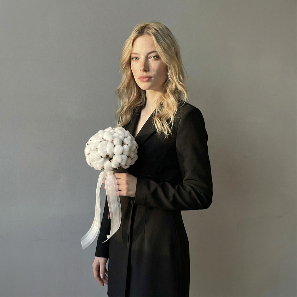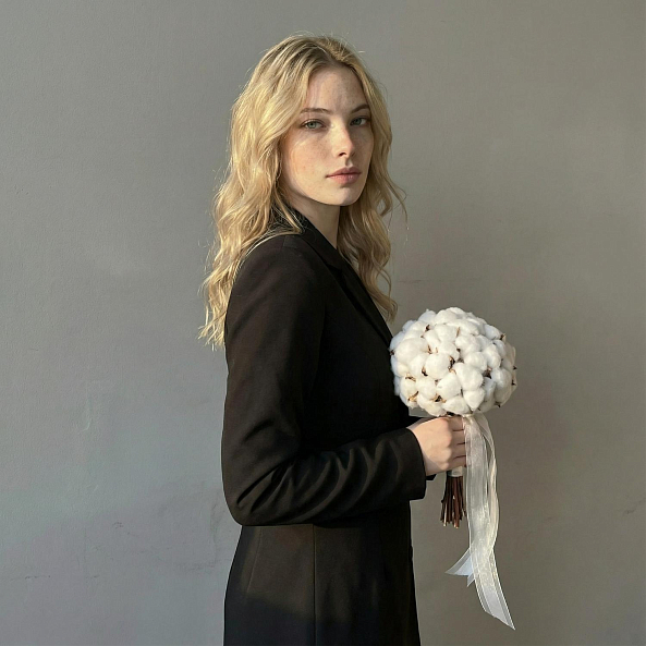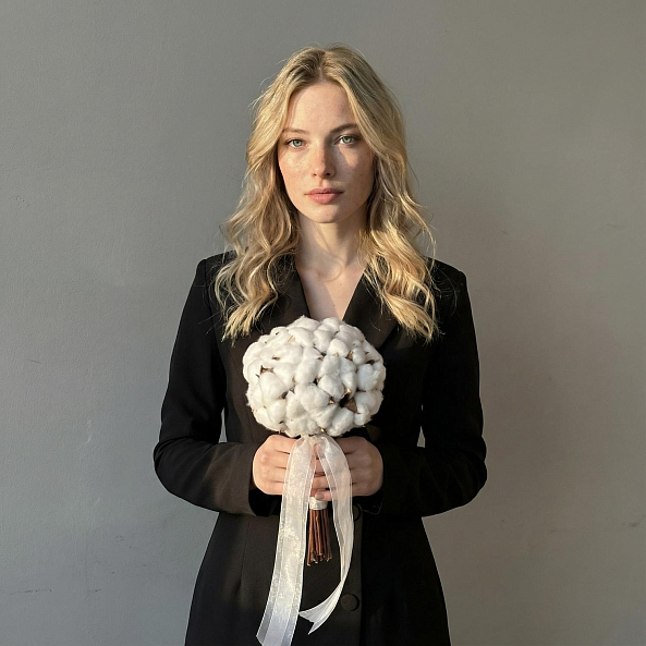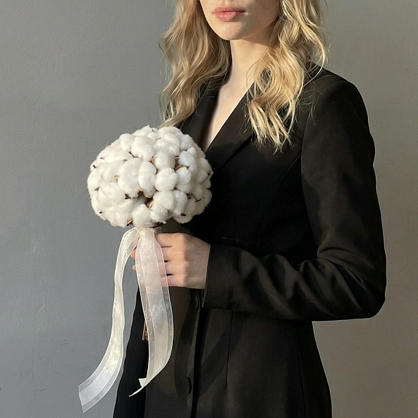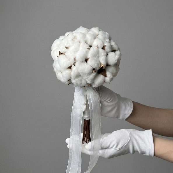 Натуральный хлопок — это не просто букет, а символ чистого сердца, мягкости и начала новой жизни. Идеален для невесты, которая ценит минимализм, экологичность и атмосферу.